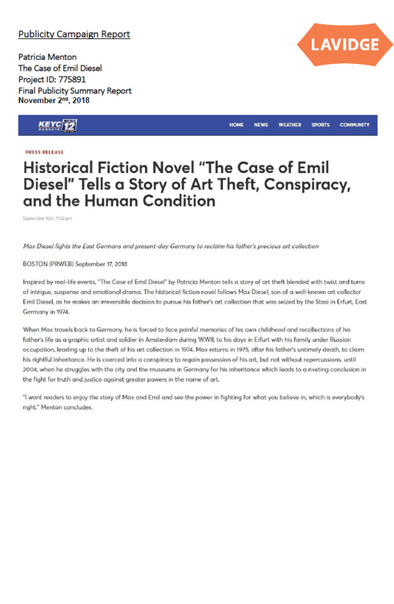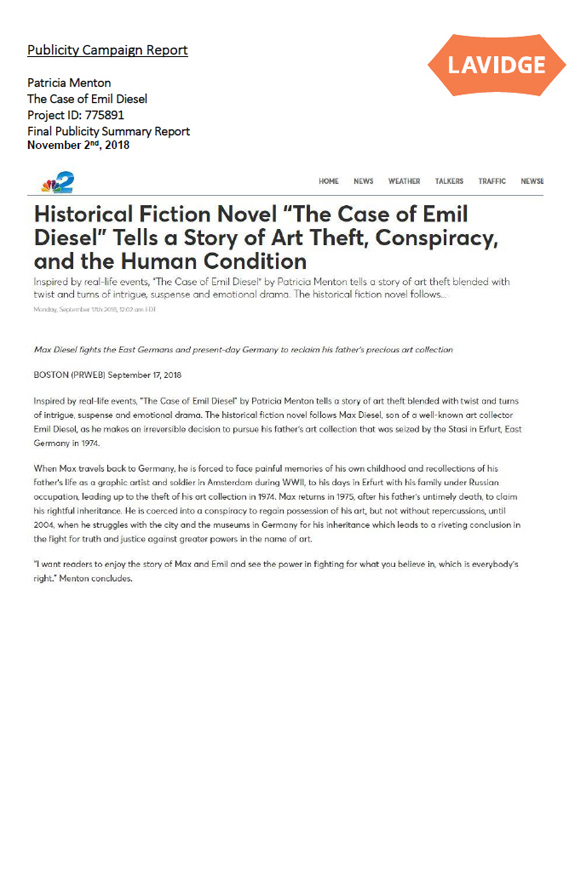 “The Case of Emil Diesel” was featured on Publisher’s Weekly online catalog. Click on the link below to view catalog.